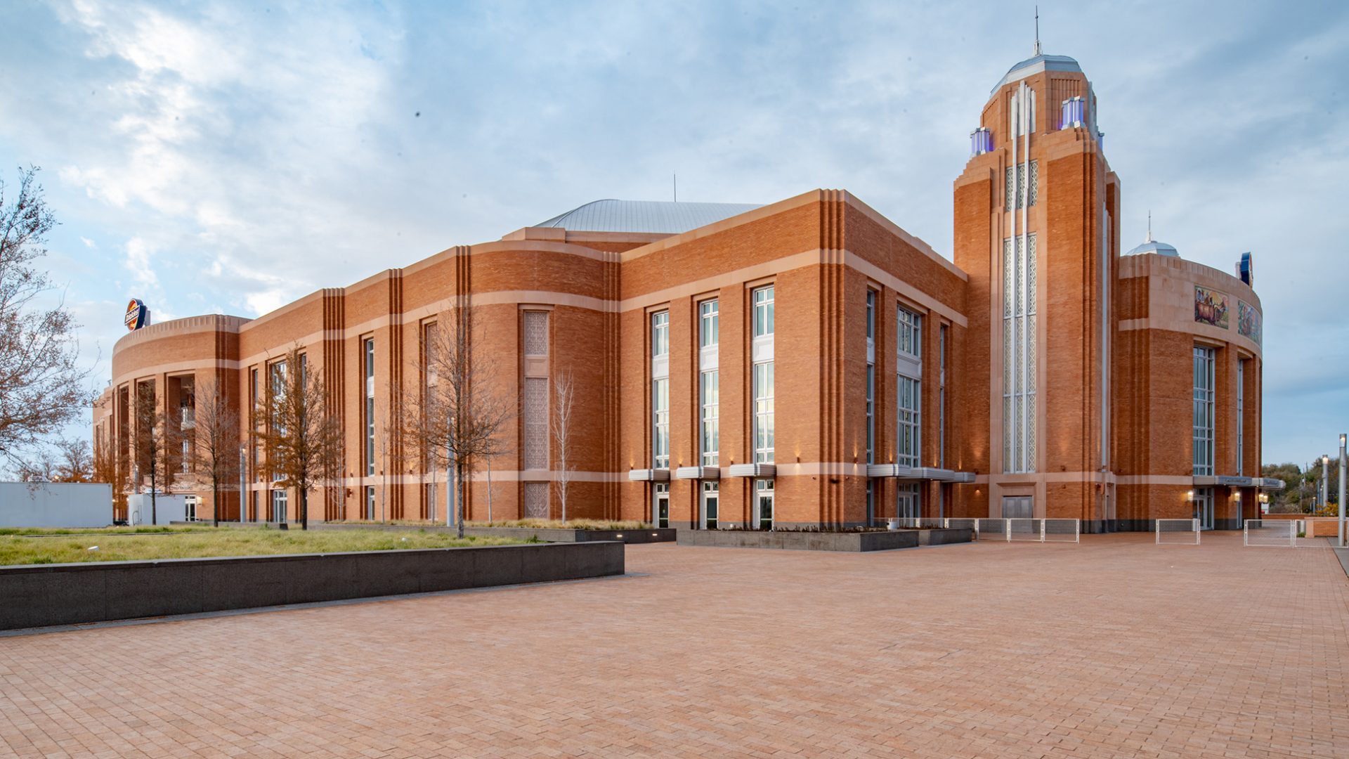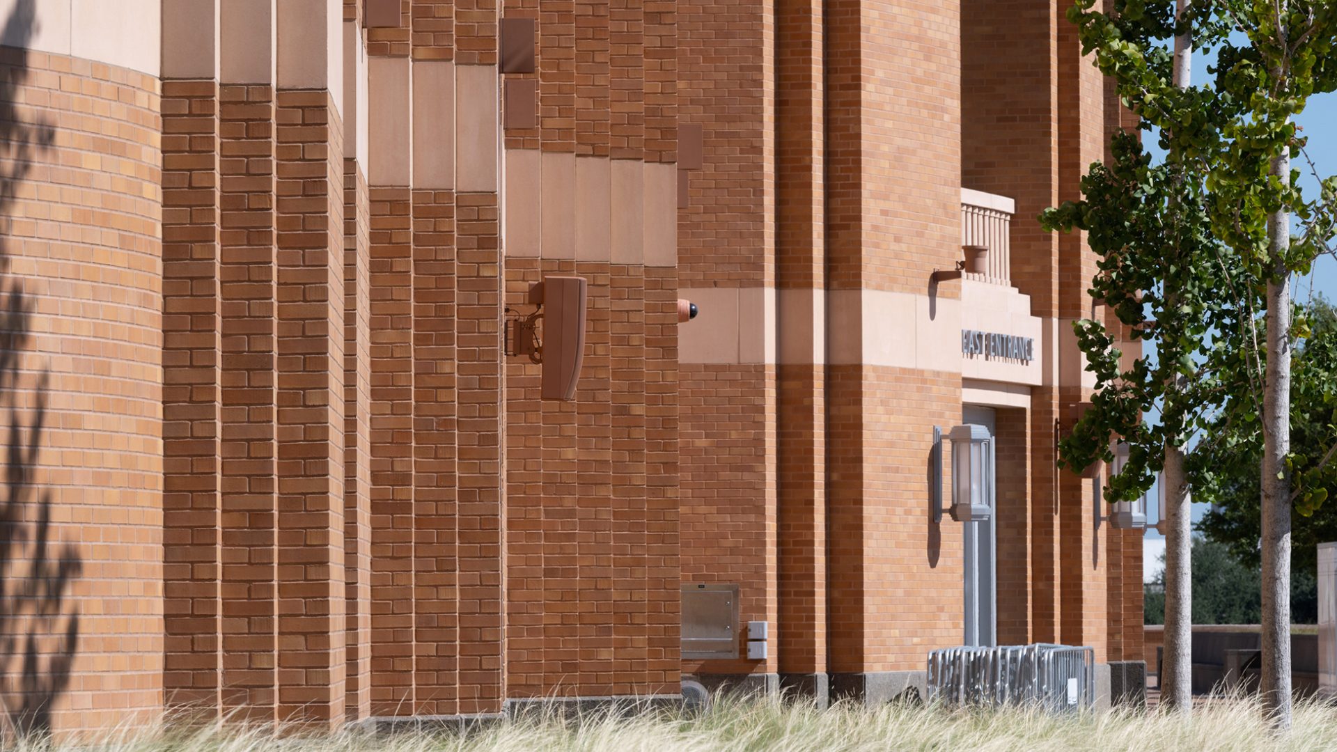 Architectural details include brick reveals that create animated corners and abstract colonnades across the elevations. Four curved grand entry porches showcase Texas prairie grasses and flowers, and the arena’s equestrian, music, and sports events in details, aluminum railings and grillwork. A pair of towering brick elements flank the arena’s north and south entrances and honor the newly restored brick Pioneer Tower four blocks to the northeast. The architects also used brick’s human scale to form grand sweeping curved walls at entry plazas and transitional building corners.
