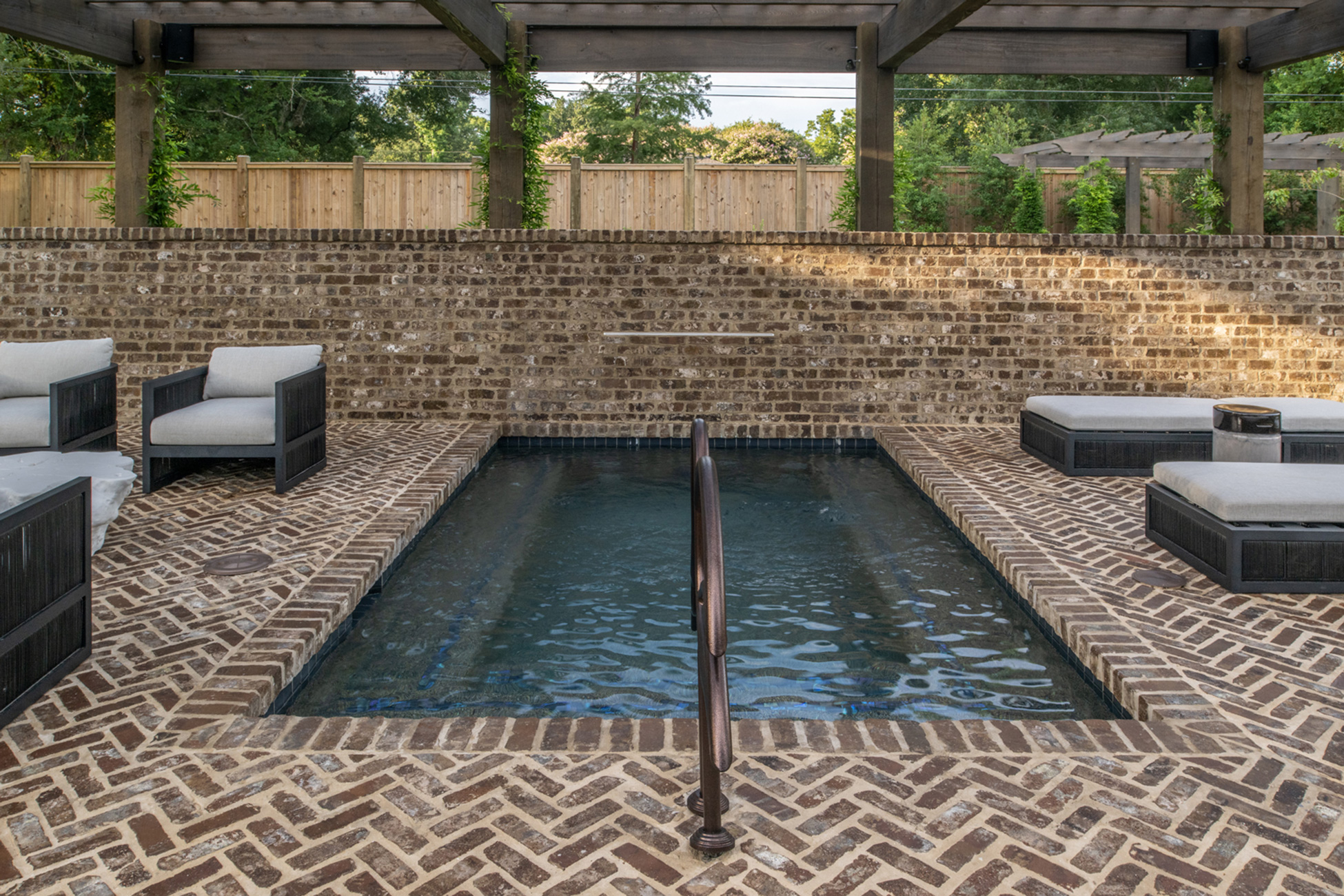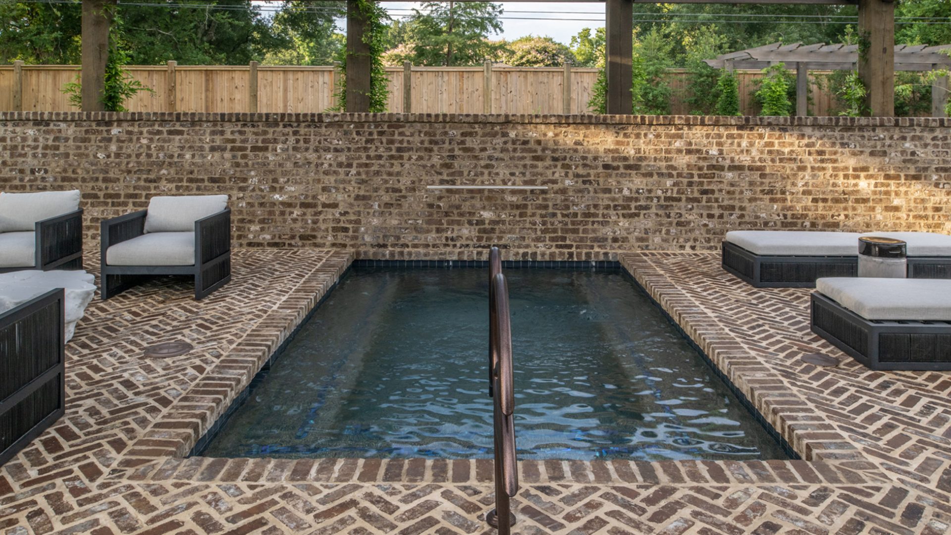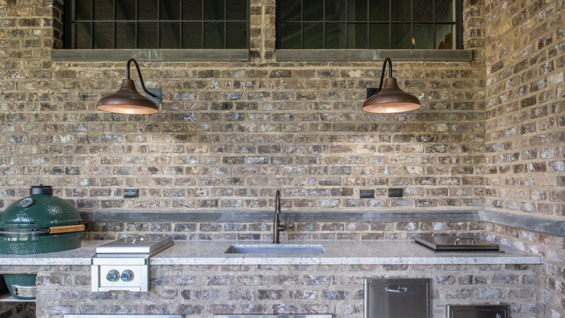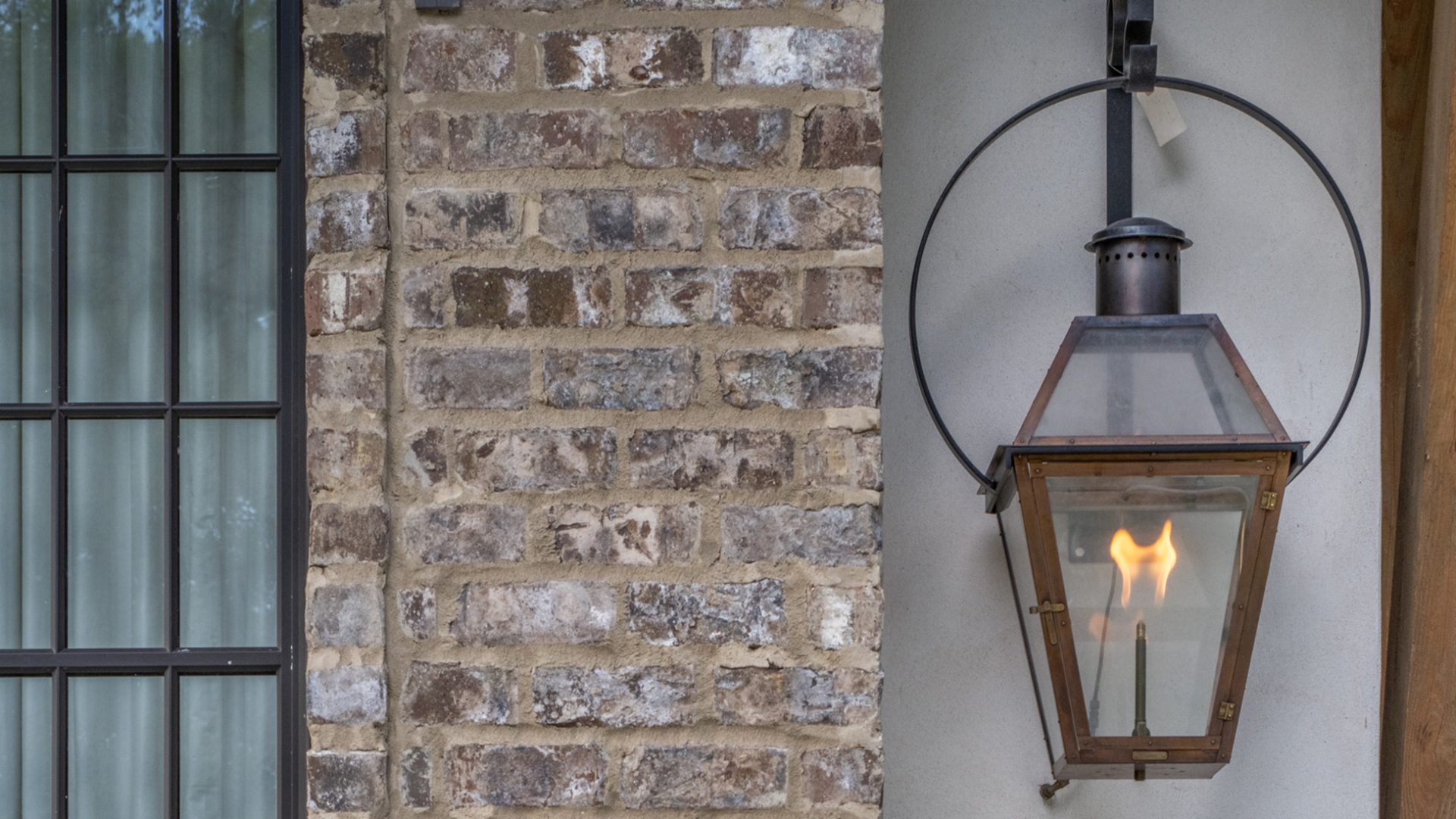 This home was built in an established neighborhood after removing the existing home and preserving the large oak and pine trees. The design morphs out of two styles, “Tudor” and “Nantucket.” both of which beg to be set in a suburban setting surrounded by aged landscaping to give the appearance of an old stately home. Given those design criteria, the materials of the home needed to reflect that same old stately appearance. That is why “Old Savannah Tumbled” king-size brick was chosen for this project. The brown hues in the brick along with the face irregularities represent that old world style and aged appearance needed to compliment the cypress, plaster and copper materials used on the exterior of the home. The warmth of the materials invite visitors into the home through the giant oaks and beautifully landscaping surrounding the home.