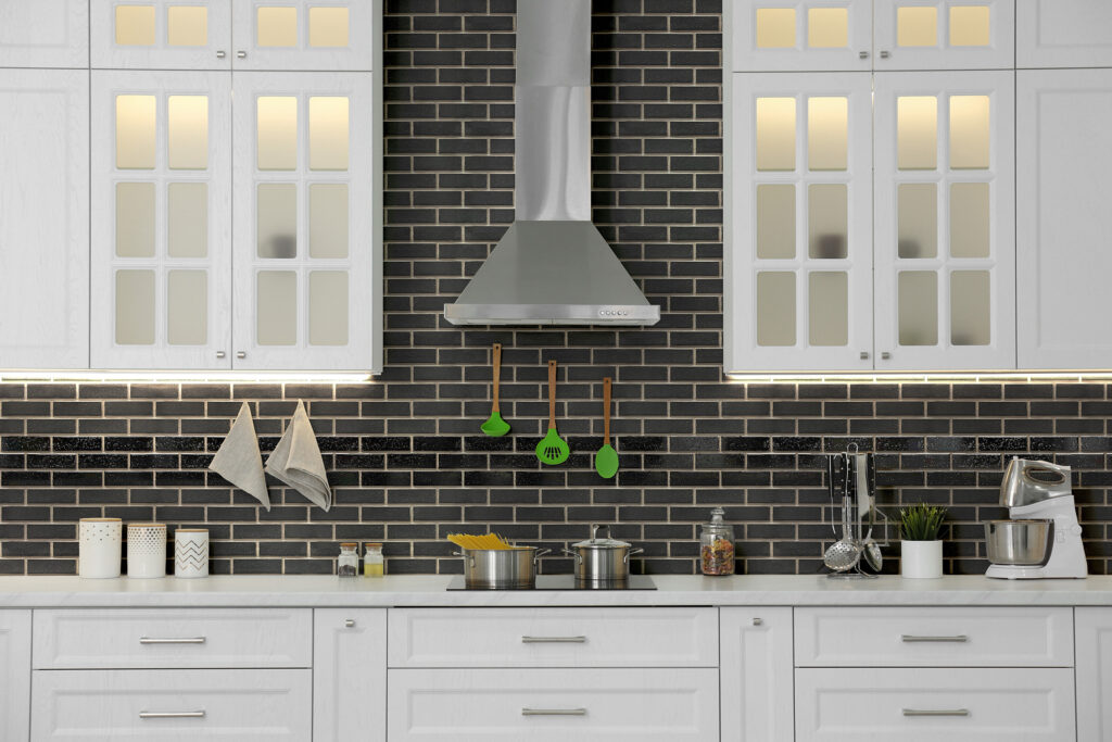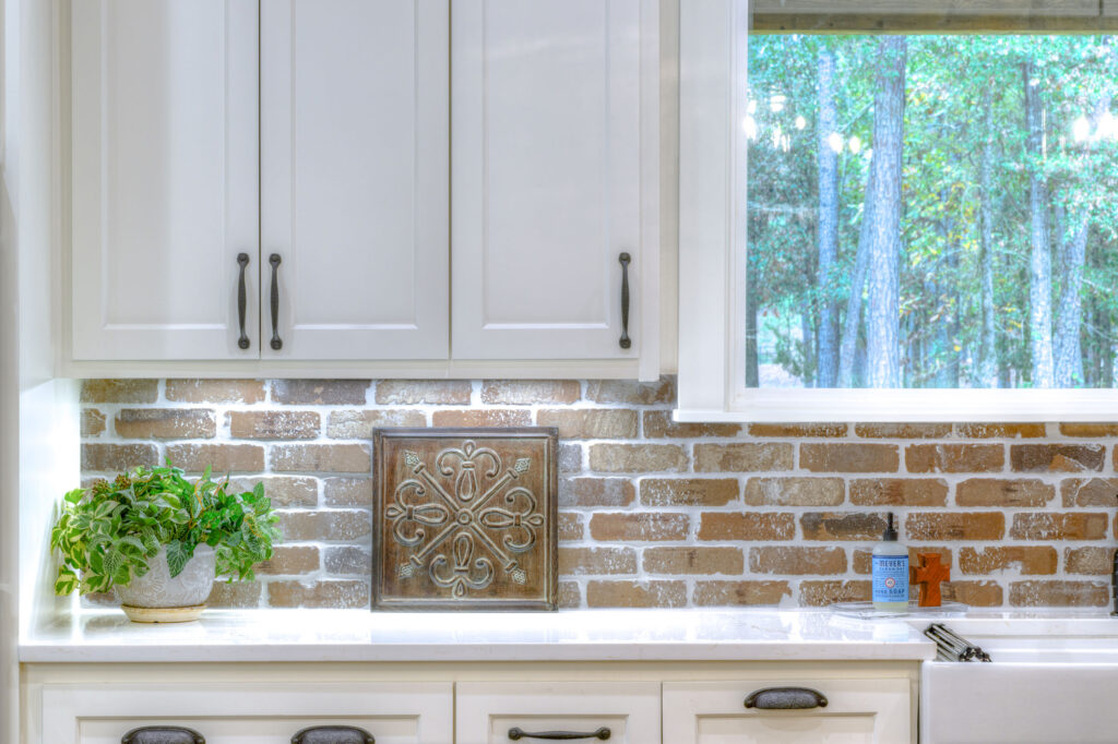 This kitchen backsplash features Acme’s English Cottage thin brick in Ellesmere.
