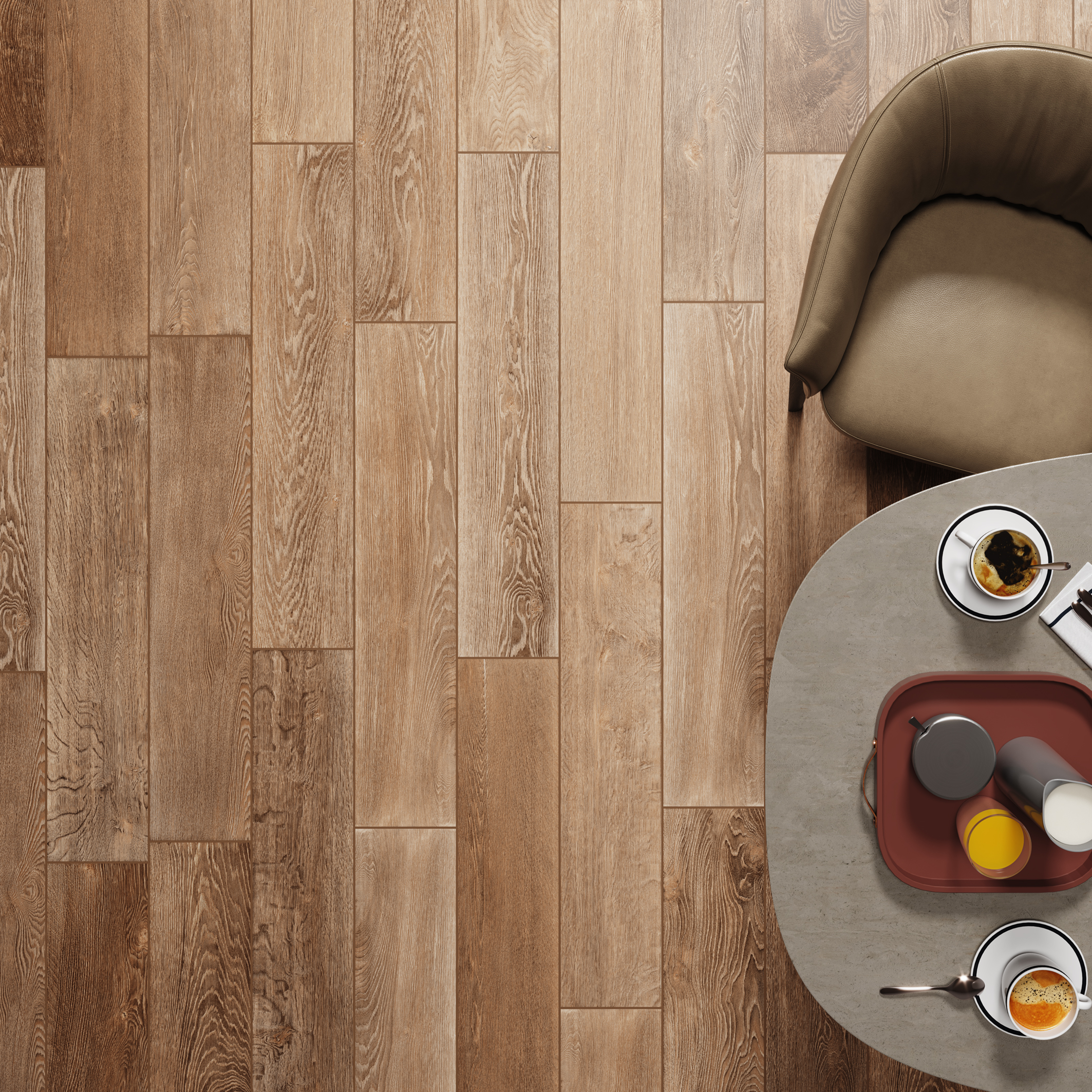 Bring the timeless beauty of natural wood into your space with the durability and low maintenance of a porcelain tile. Our Artisan Wood series features realistic wood grain patterns, rich color variations, and authentic textures that replicate the warmth and charm of hardwood flooring—without the worry of warping, scratching, or water damage.